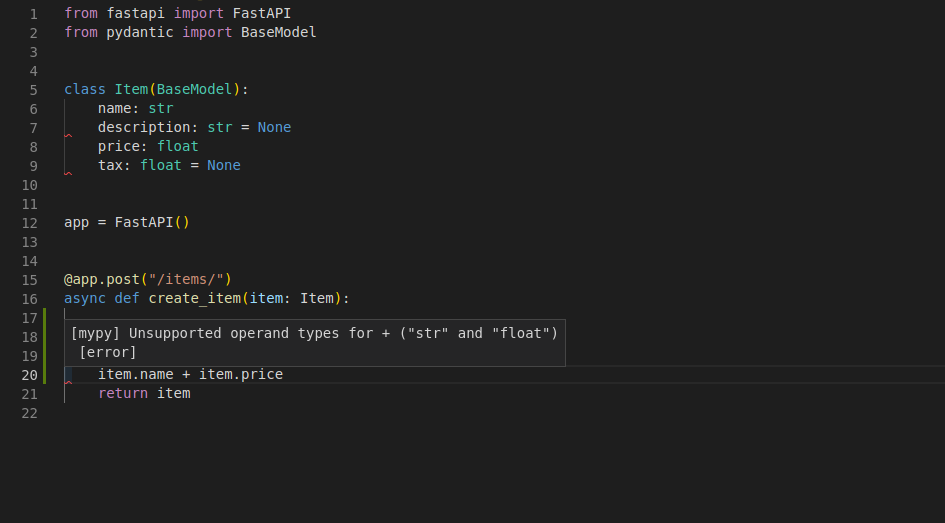 Лише з цим оголошенням типу Python FastAPI буде: